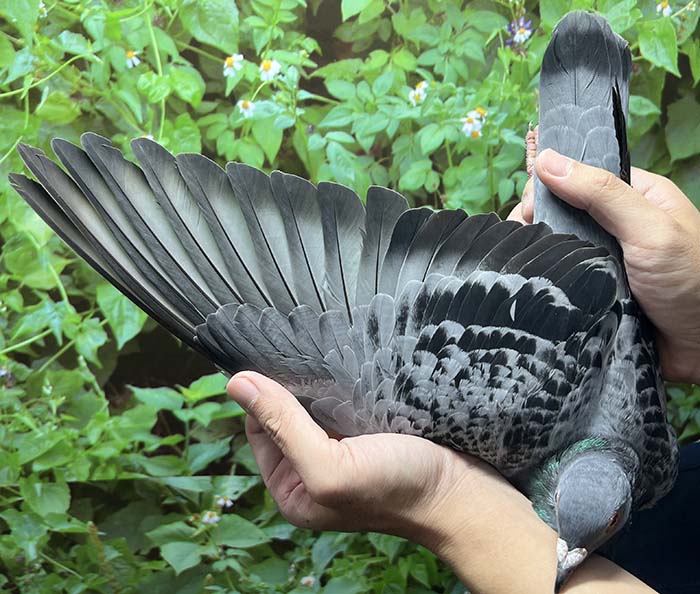 骨格頗粗壯,體格的結構則像一個梨子,背部不會太寬,翅膀可作典範,羽翼的邊緣圓順且寬,末段能夠完全地讓氣流通過,羽翼的排列層次分明。淡灰的眼神顯得很是機靈,瞳孔直接正對著前方。若以選手鴿的級數來說,它是極品。