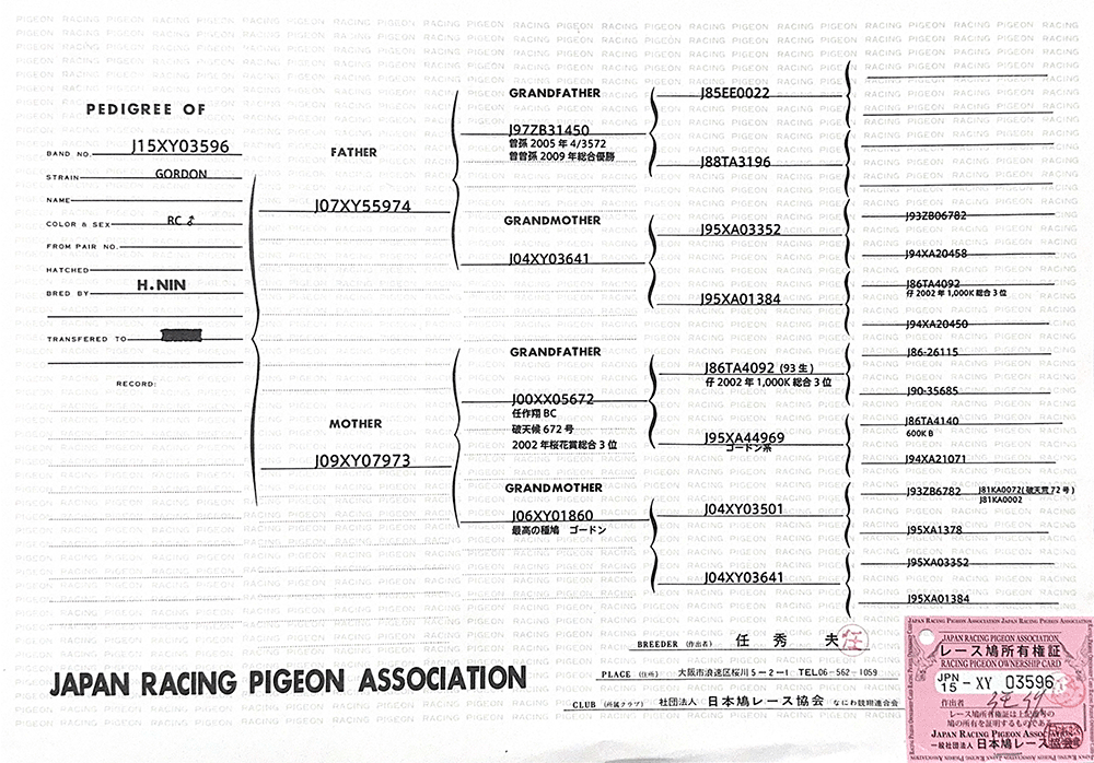 ▲母鴿:J09-XY07973