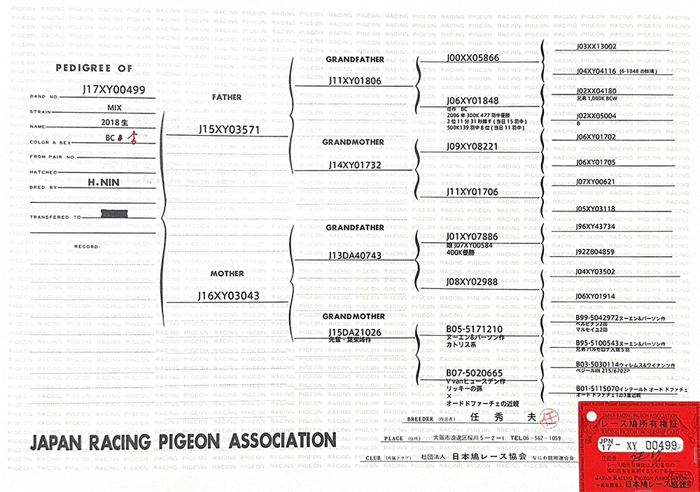 ▲母鴿:J16-XY03043(贈送鴿3A)