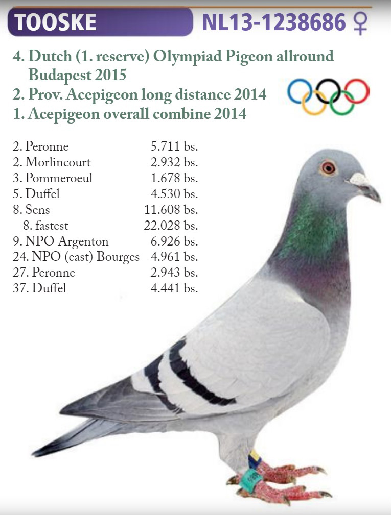 姐鴿:2017年冬季竹南大新5856羽六關綜合54位(殘64羽);傳奇凱旋973孫X鴿王費德爾孫女