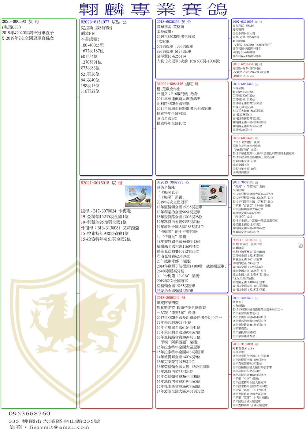 4次冠軍音布利區鴿王冠軍直子X2次全國冠軍直孫女