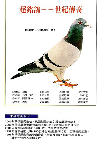 2000年秋季板聯分會(北海競翔)全會第四關殘11羽伯馬之一(三關殘存62羽佔2羽獲高獎賞)