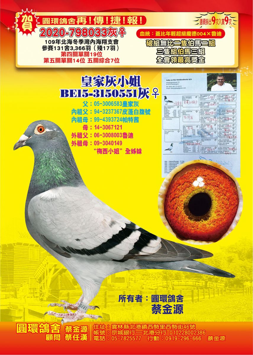 ▲B00-3195029“碧姬”波提爾全省2766羽亞軍,查特魯全省4498羽7位