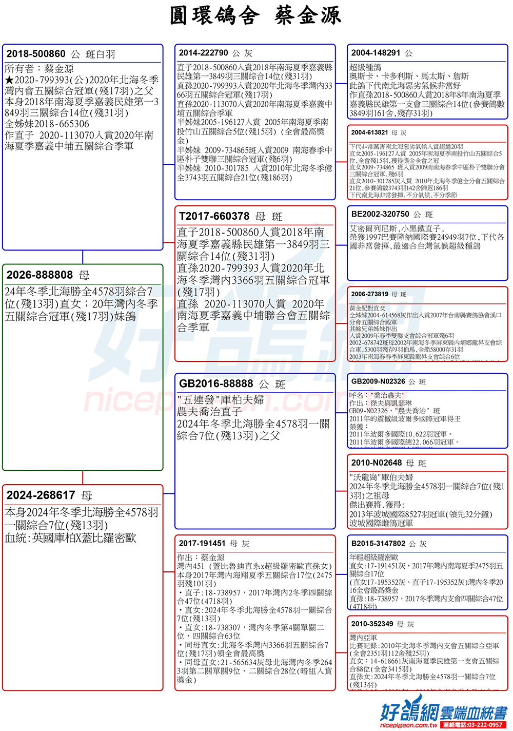 【雙冠王】20年灣內3366羽冬季五關綜合冠軍(殘17羽)X16年春季大台北三關綜合冠軍(殘25羽)全船最高分速;姐鴿桃園大北區春季五關綜合7位(殘13羽)