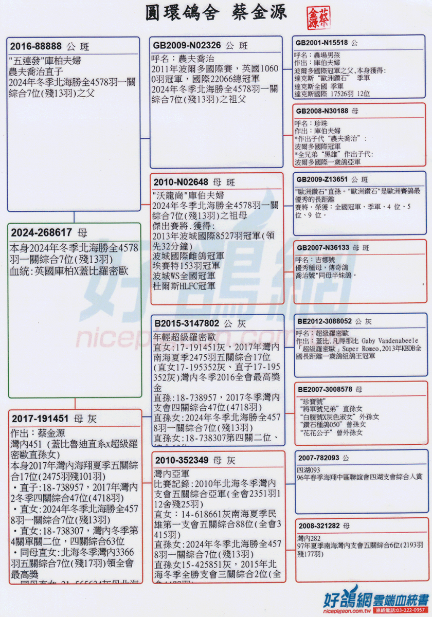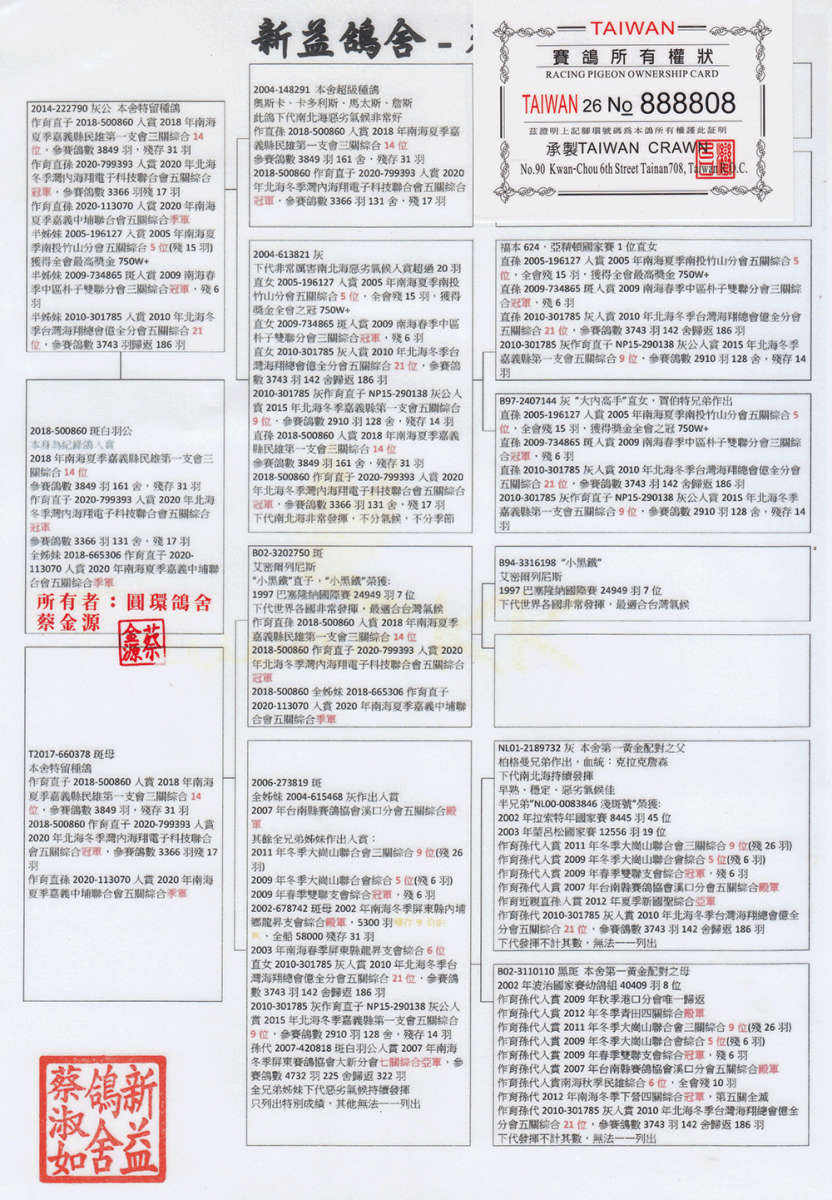 100%皇立號血脈;2021年冬季新竹大西區4265羽六關綜合36位家族
