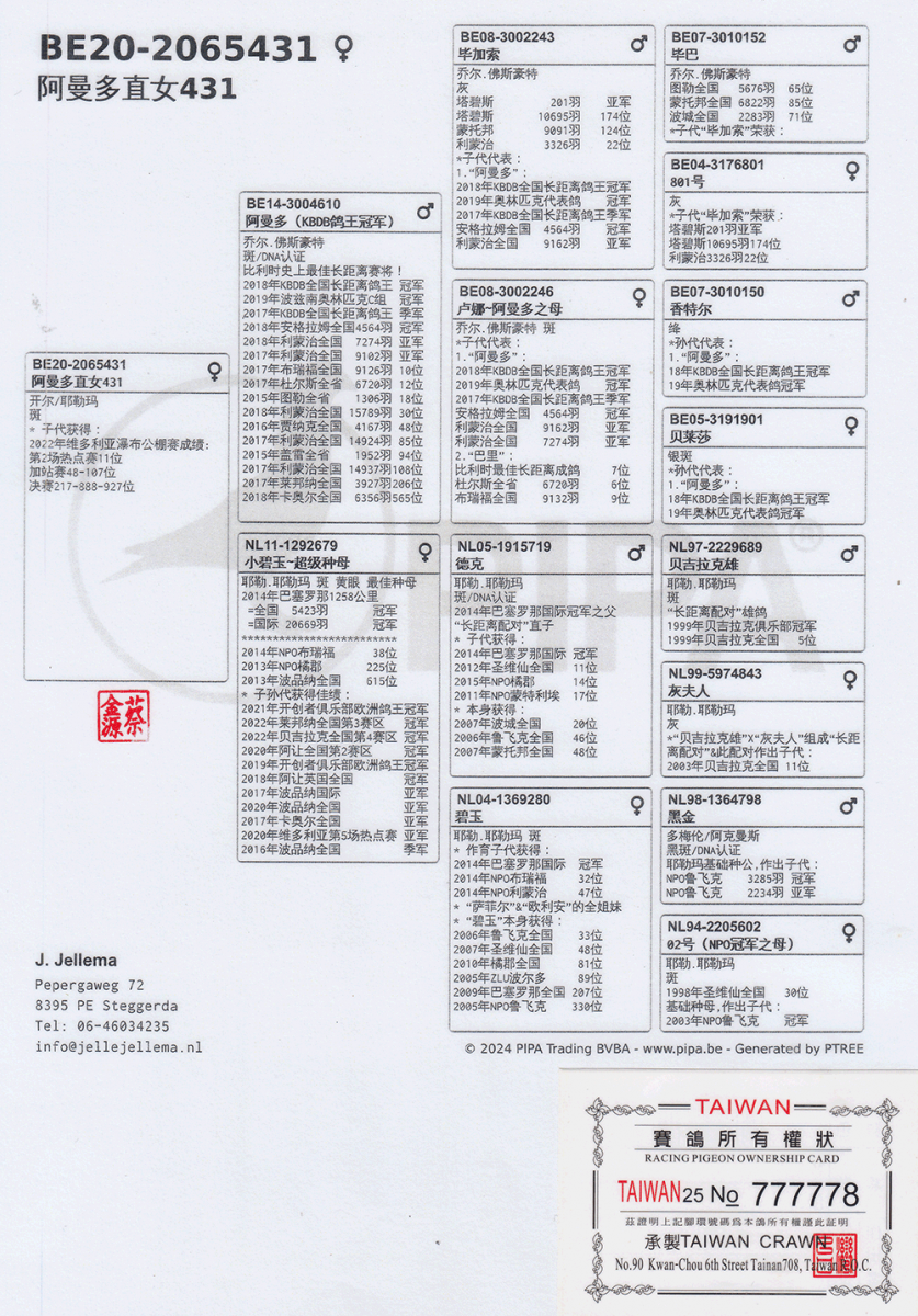 ▲母鴿:2020-2065431-出自佛斯豪特傳奇鴿「阿曼多」X巴塞羅那國際冠軍「小碧玉」