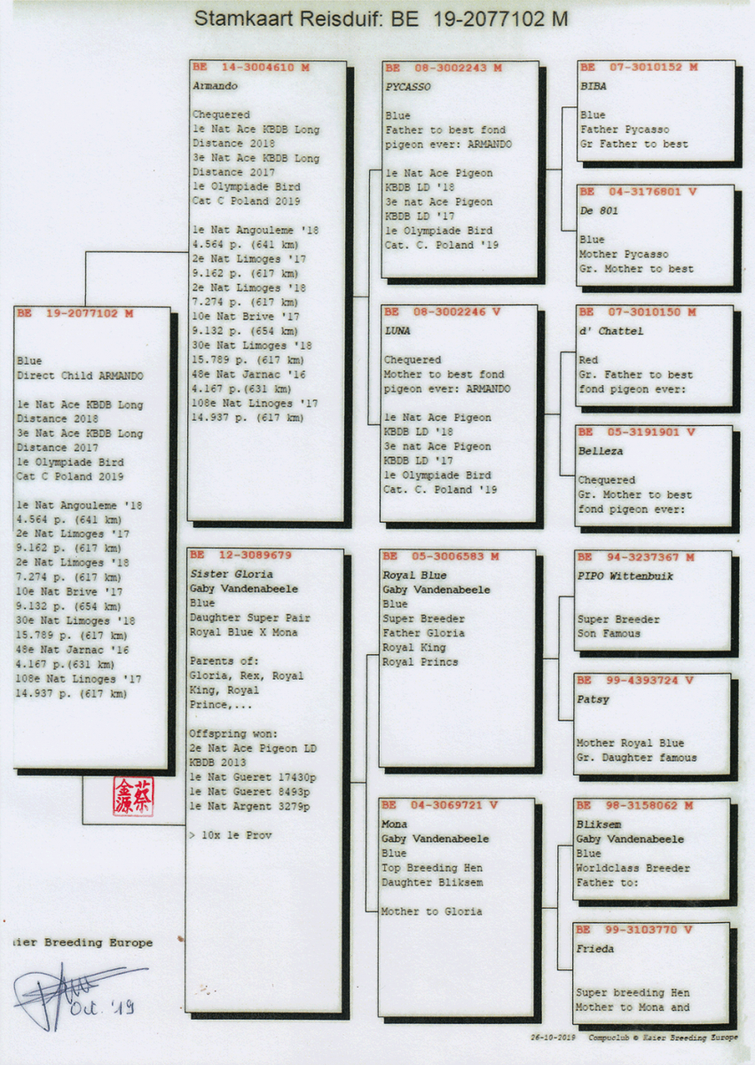以蓋比血統家族聞名的蔡金源分享,蓋比鴿系的骨架堅硬、健康狀況、種鴿融合度都很好,很適合激烈的台灣海翔。近年如22-254484(灰)冠聖冬季3223羽五關綜合冠軍(全船15位),冠軍鴿之母就是由蔡董作出,血統為超級羅密歐4號(羅密歐直子)X漂亮小姐(魯迪直女)。這羽優秀的蓋比血統冠軍鴿在第一關單關亞軍、第二關單關季軍、第三關單關冠軍、第四關單關季軍,可以說是大殺四方、名不虛傳。可見,蔡金源的蓋比家族經過實戰驗證,無論是近親或是交配他系,都能夠入賞得獎屢創佳績。