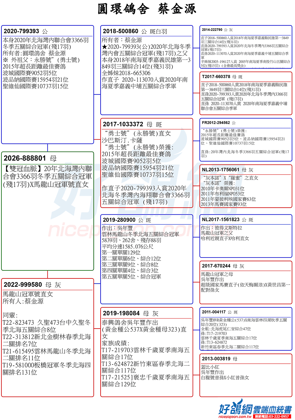 【領頭羊】《雙冠血脈》20年北海灣內聯合會3366羽冬季五關綜合冠軍(殘17羽)X馬龍山冠軍號直女
