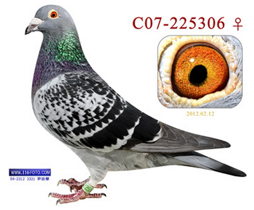 ▲外曾祖母:T2007-225306雙B鴿王直女306
