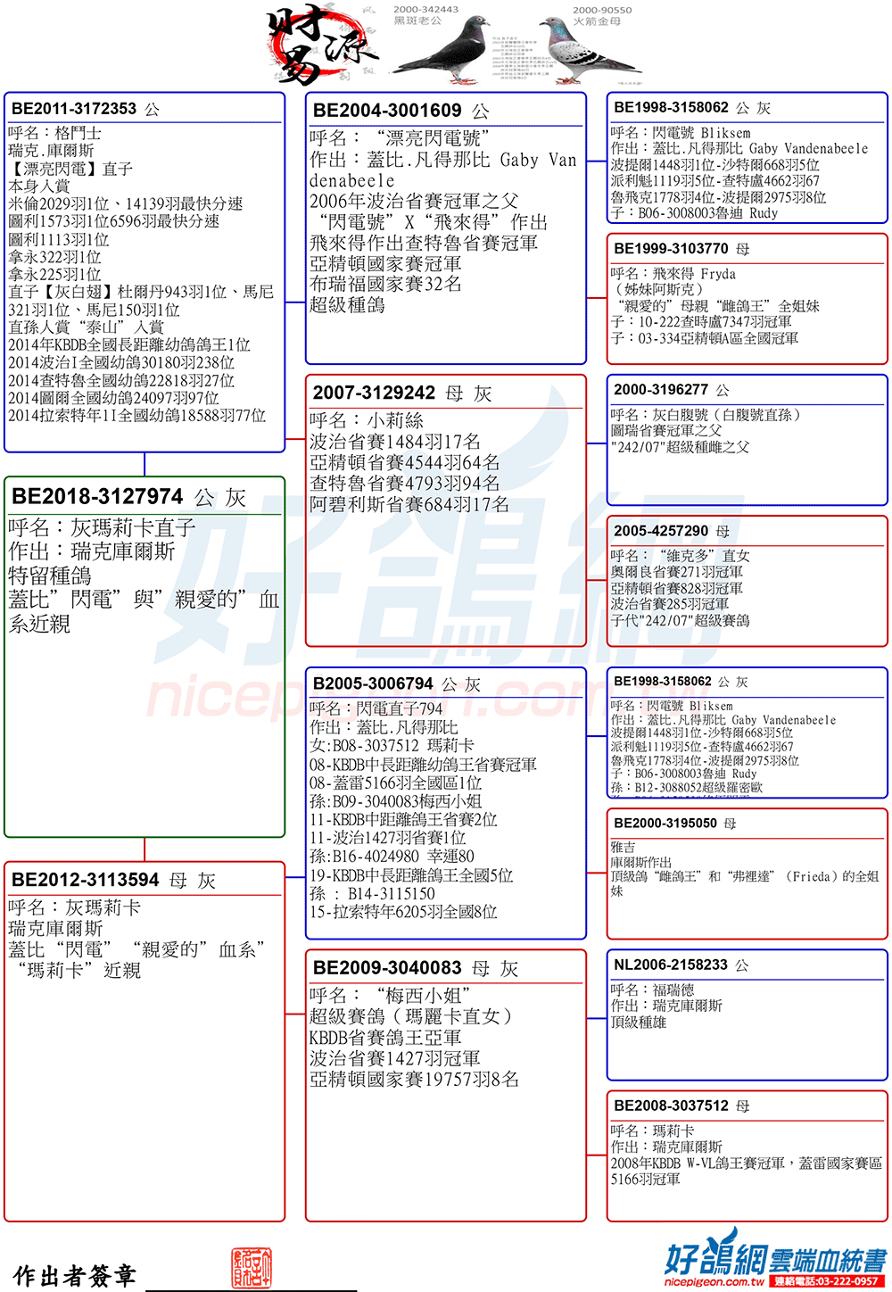 【鴿主推薦】佰萬種公(詹森白羽號)原配對近親家族