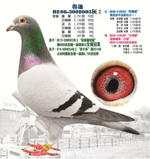 2025年夏季宜蘭聯合會二關綜合8位,環號25-137047灰♂,其父鴿24-993616斑♂,本身入賞夏季三關綜合7位(群益冠軍家族X小火箭三冠家族),母親24-333022,血統為夏季三關綜合亞軍全妹(雙伯馬家族X哈利近親)所作出,許銘財又一次以實戰成績印證了優質血統一脈相承的可貴。
