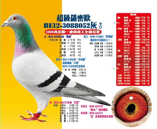 今年(2025)夏季再度在酷暑燠熱的逆風賽事,入賞宜蘭聯合會全會2195羽二關殘15羽的殘局中,獲得二關綜合8位,再次以實績展現其鴿系在逆風殘局的超強戰力。