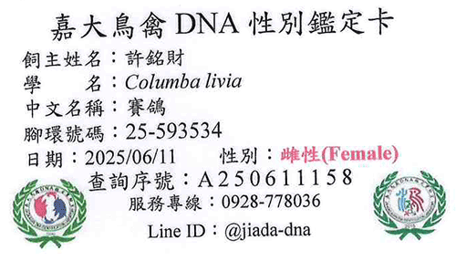 ▲母鴿:2018-887412宜蘭冠鈞綜合4位之母