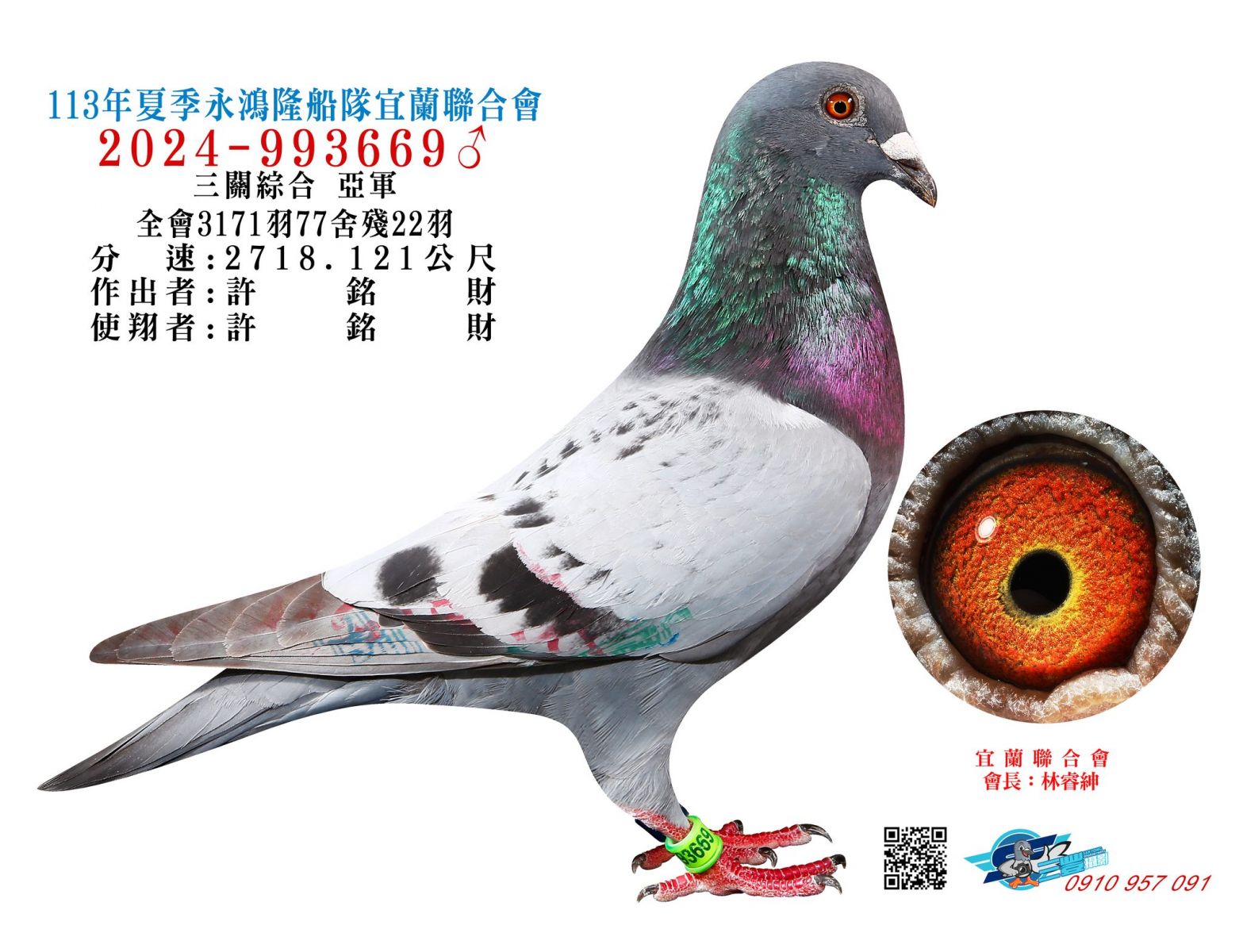 ▲父鴿:2024-993669夏季宜蘭聯合會3171羽三關綜合亞軍