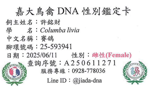 2025年夏季宜蘭聯合會二關綜合8位,環號25-137047灰♂,其父鴿24-993616斑♂,本身入賞夏季三關綜合7位(群益冠軍家族X小火箭三冠家族),母親24-333022,血統為夏季三關綜合亞軍全妹(雙伯馬家族X哈利近親)所作出,許銘財又一次以實戰成績印證了優質血統一脈相承的可貴。