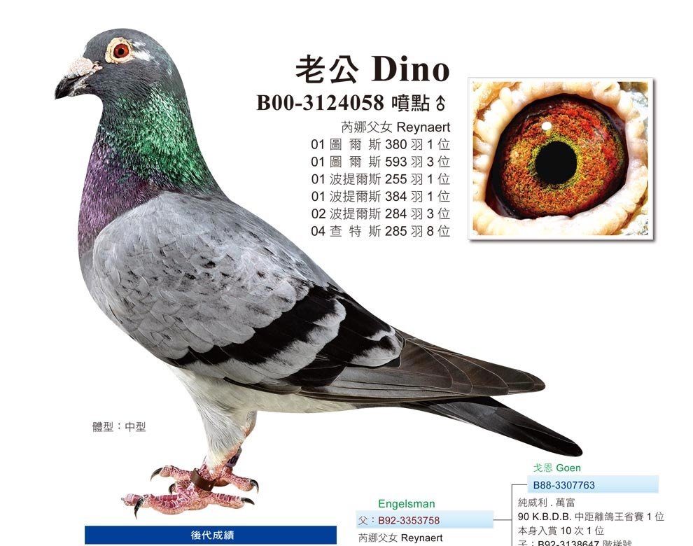 以B13-3000518灰♀為基礎,這羽出自KBDB長距離鴿王全國冠軍 “白羽利萬多”配史坦尼斯直女所作出的傑出母鴿,本身作出直子入賞板橋冠軍會春季三關綜合8位、直女入賞大新莊春季綜合15位(三次單關冠軍),也因為其下代戰績出色,先後導入直子女及平輩多達10餘羽。