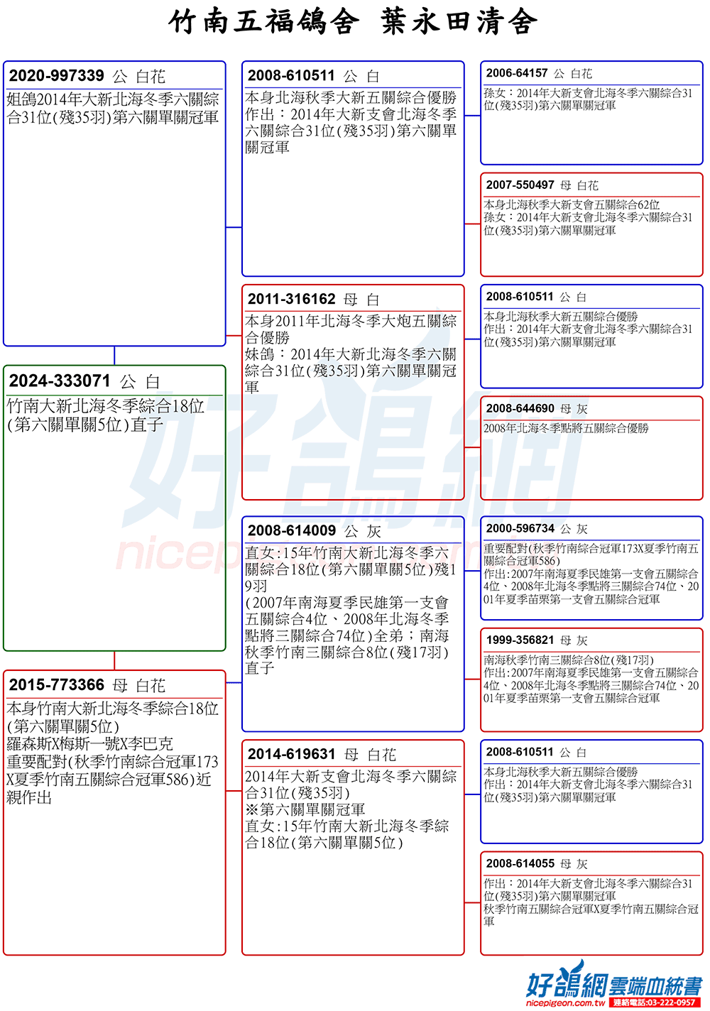23年大北區冬季20106羽五關綜合77位(殘79羽)妹鴿;【雙伯馬】19年新北海春季11522羽五關綜合7位(殘20羽)X19年台中翊翔北海春季四關綜合7位(殘8羽)
