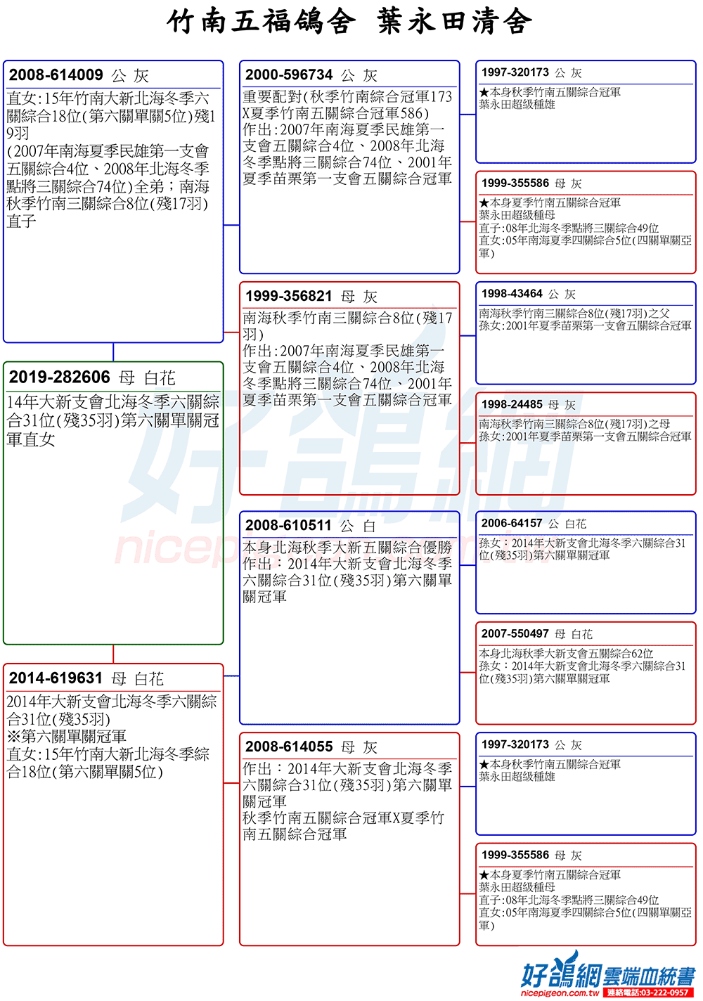 ▲曾祖父、外曾祖父:1997-320173秋季竹南1100羽五關綜合冠軍(第一關、第五關冠軍)
