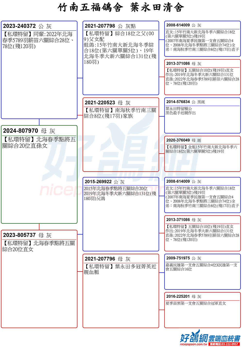 【25年大北區冬季25位之母妹鴿】23年冬季北海台中久聖16000羽五關綜合33位(殘56羽)、22年久聖北海冬季13680羽五關綜合66位(殘82羽)妹鴿