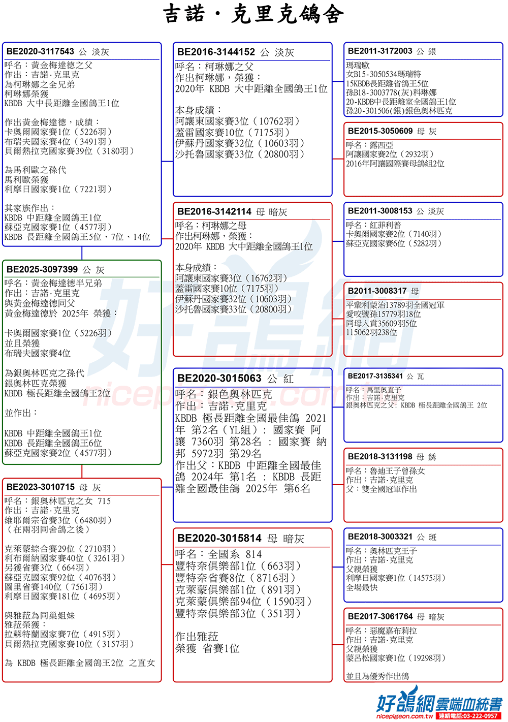 ▲10年內獲六次KBDB全國鴿王冠軍的吉諾克里克