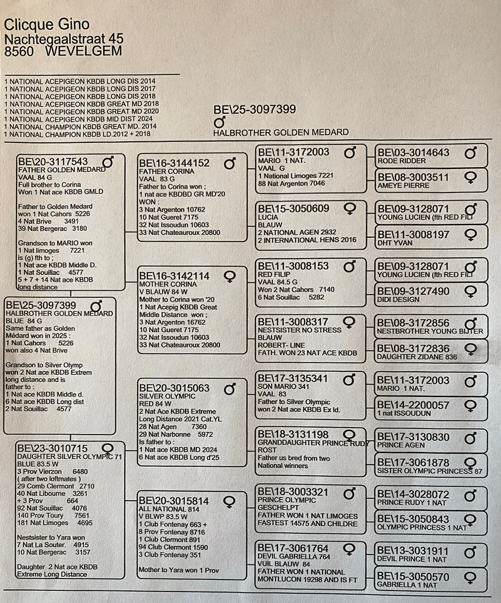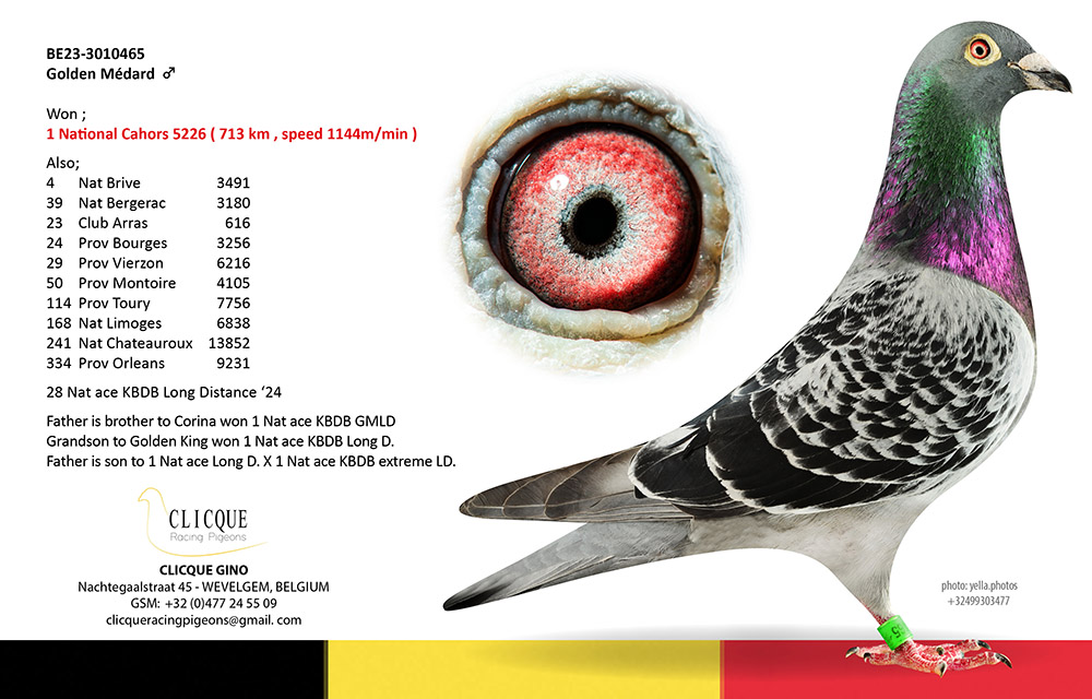 黃金梅達德(卡奧爾國家賽5226羽1位)兄弟鴿