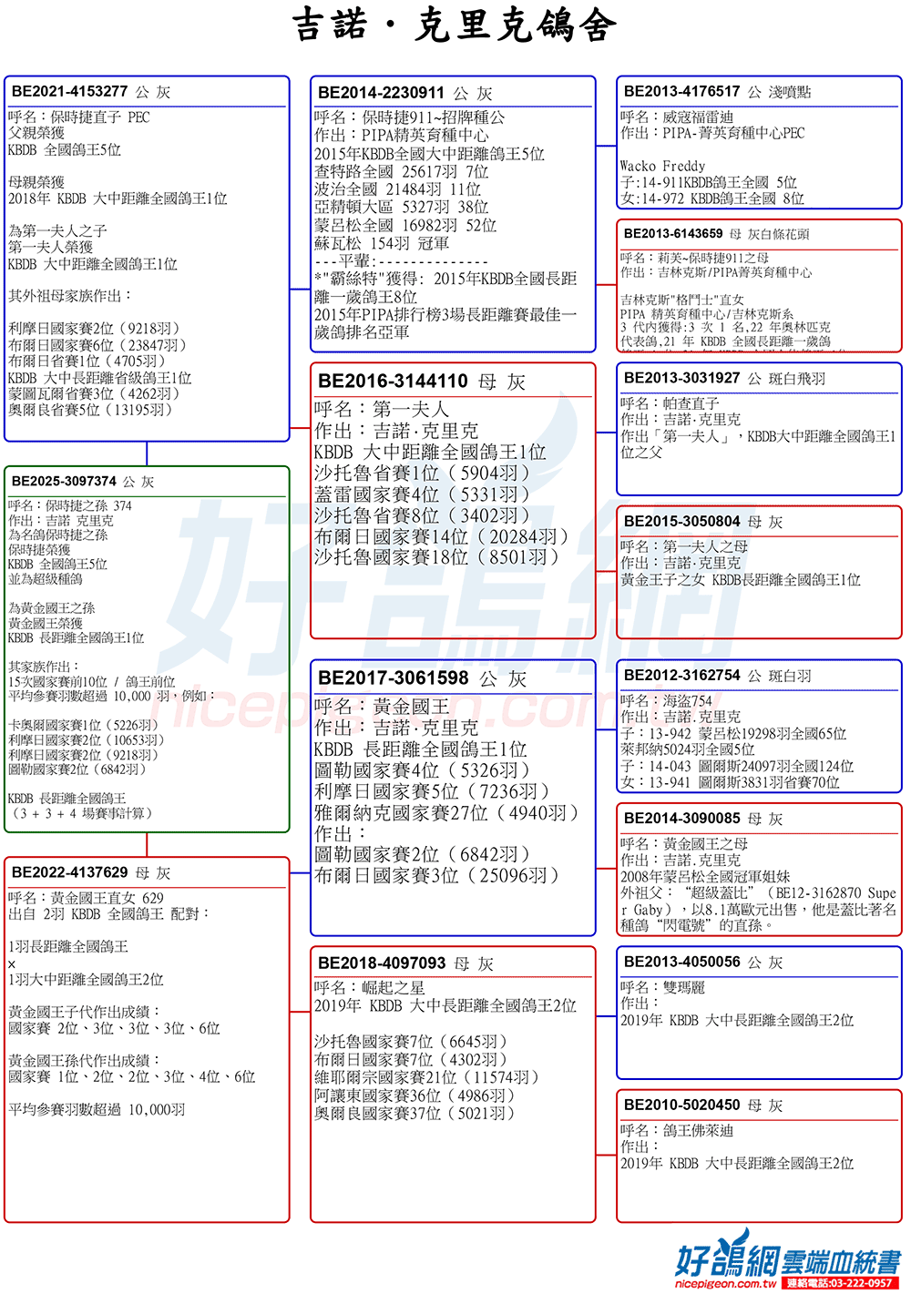 ▲10年內獲六次KBDB全國鴿王冠軍的吉諾克里克