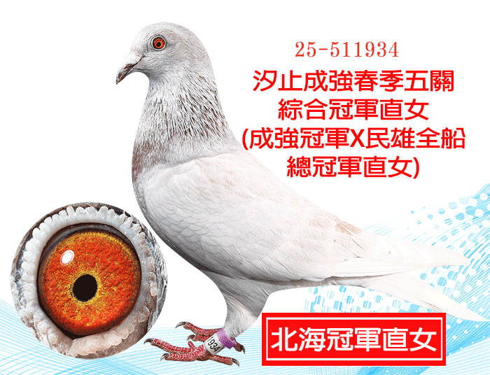 小公牛(KBDB全國鴿王7位)X巴塞隆納榮耀號血脈種母