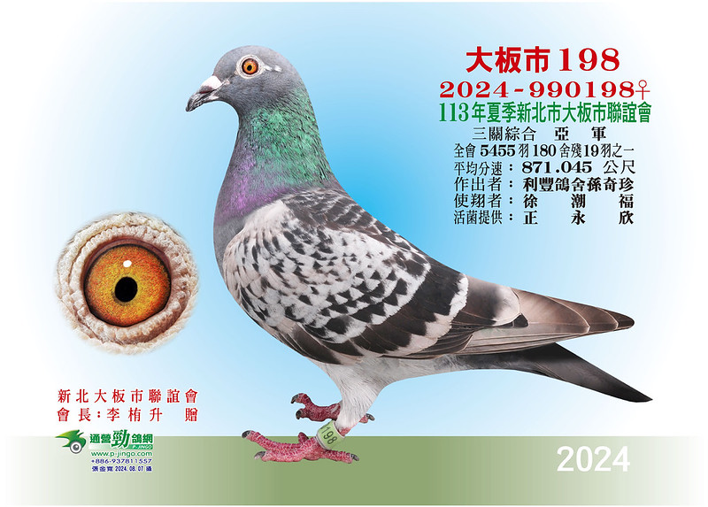 ▲24-990198夏季大板市5455羽三關綜合亞軍(殘19羽)