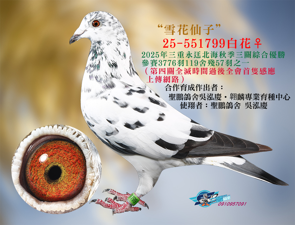 2025年秋季寄翔7羽於三重永迋兩關排名8位、三關綜合優勝、暗組多項獲大奬(全會3776羽殘存57羽)。第四關全會時間內無鴿歸返的情況下,在永迋與另一友人合作作育的一羽白花母鴿25-551799是時間過後全會第一隻歸返感應鴿鐘後成績有上傳網路的(全船各會當日歸返極為少數)。