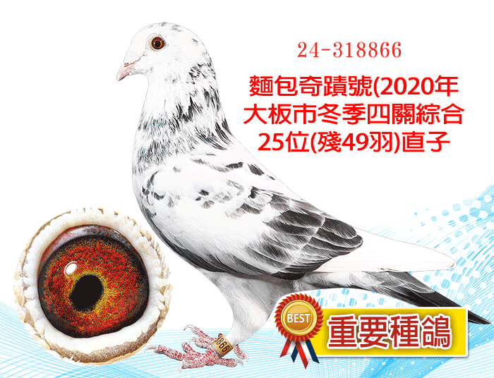 【重要種鴿】麵包奇蹟號(2020年大板市冬季四關綜合25位(殘49羽)直子