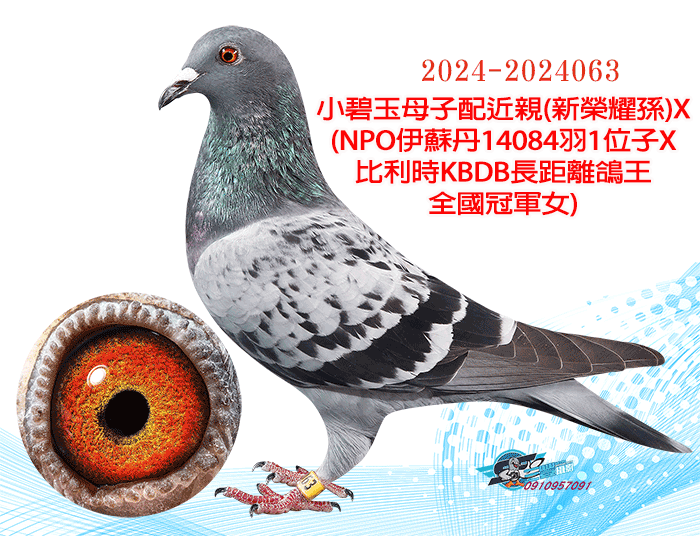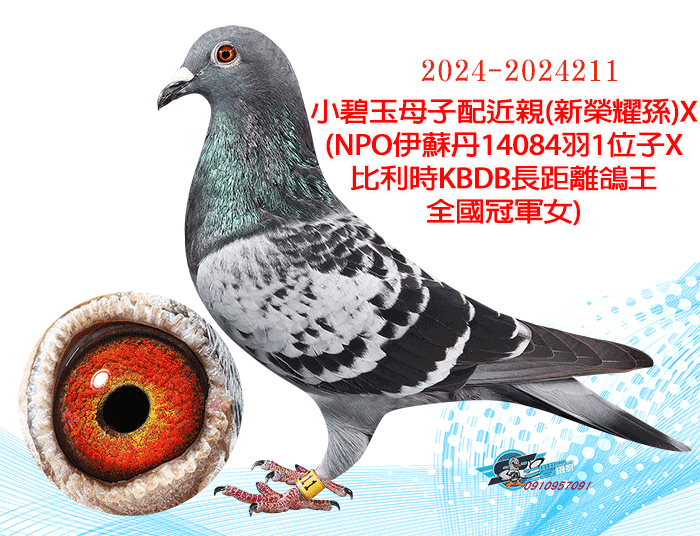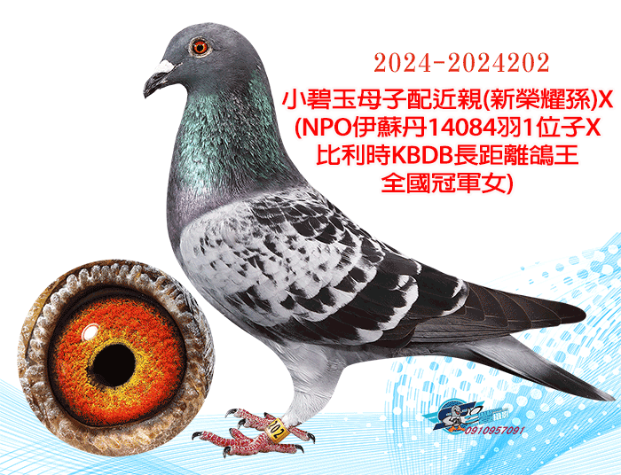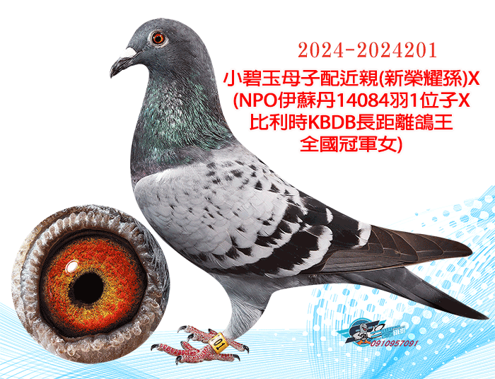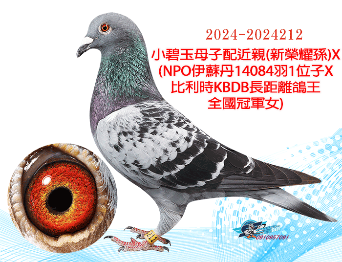 小碧玉母子配近親(新榮耀孫)X(NPO伊蘇丹14084羽1位子X比利時KBDB長距離鴿王全國冠軍女)