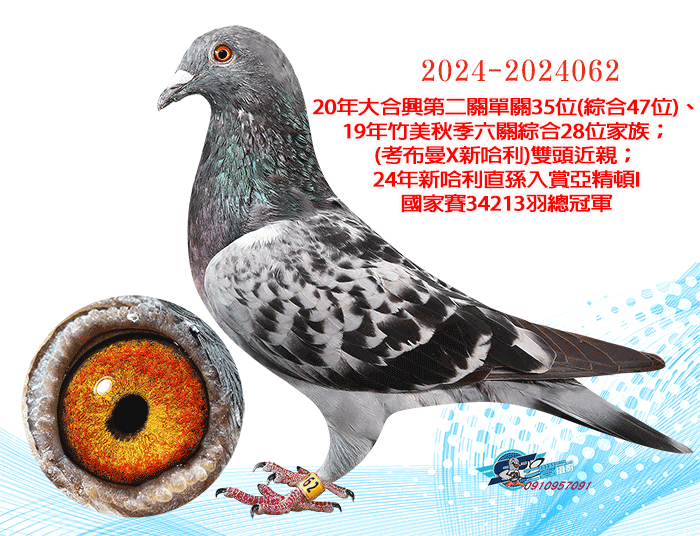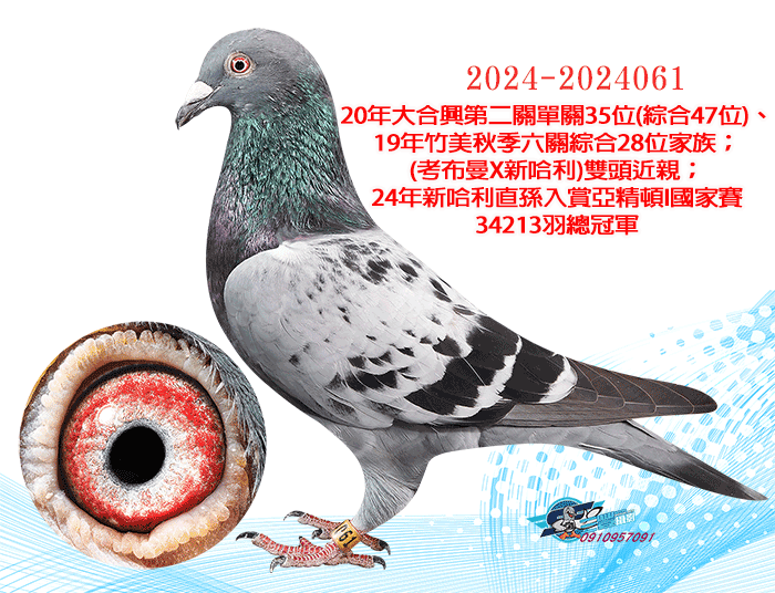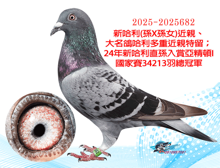 新哈利(孫X孫女)近親、大名鴿哈利多重近親特留;24年新哈利直孫入賞亞精頓I國家賽34213羽總冠軍