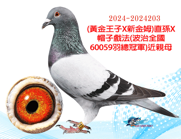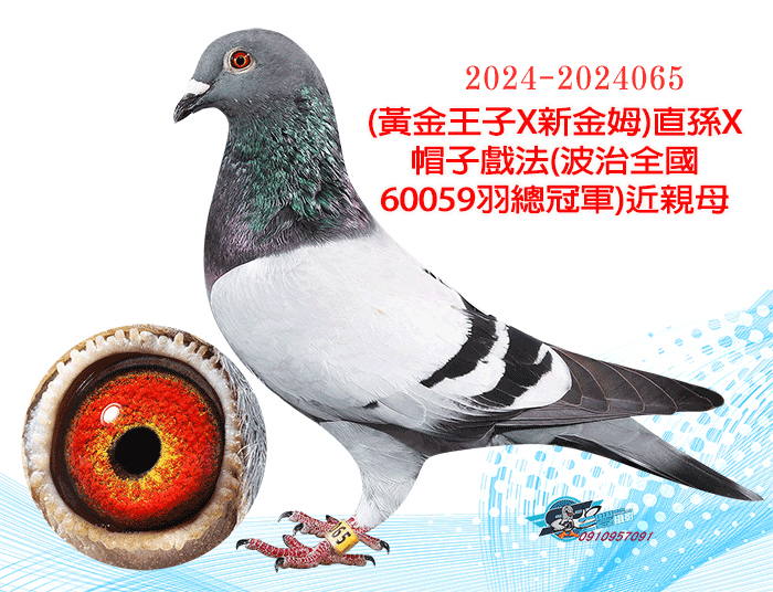 (黃金王子X新金姆)直孫X帽子戲法(波治全國60059羽總冠軍)近親母