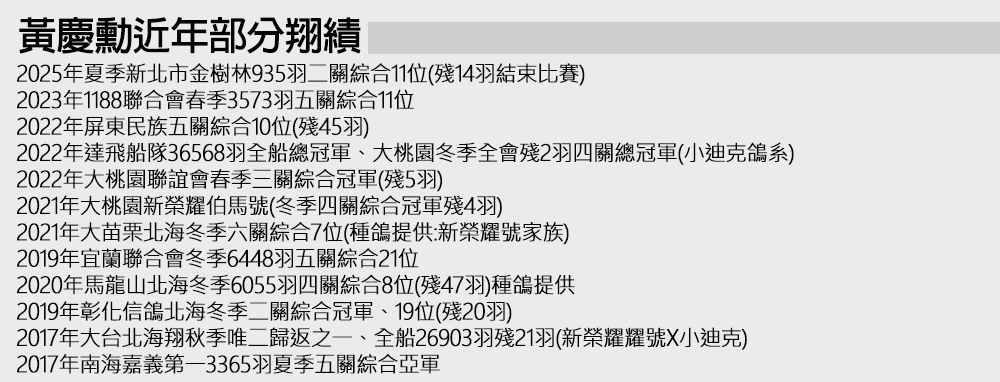 2025/10/14-10/20松柏長青鴿舍.花蓮黃慶勳:紀錄實戰家族