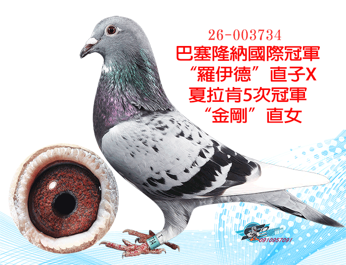 帥哥哈利金剛748X長距離鴿王全國冠軍“阿曼多”近親直孫女