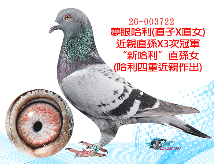 夢眼哈利直孫X550公里12801羽全國冠軍直女