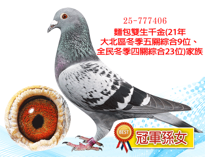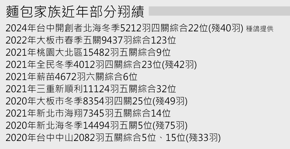 麵包奇蹟號(2020年大板市冬季四關綜合25位(殘49羽)家族