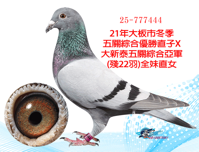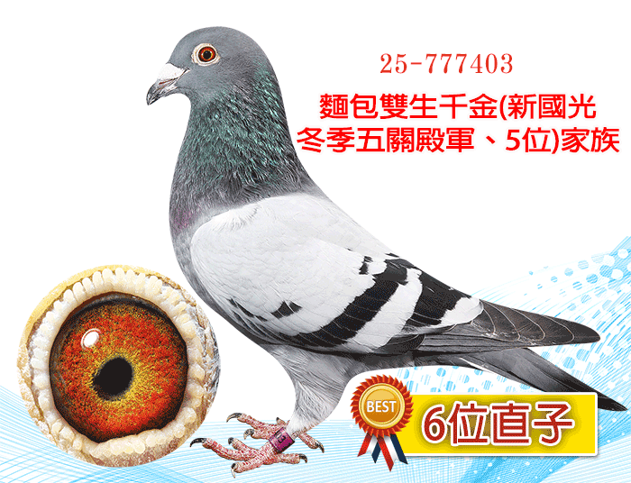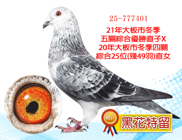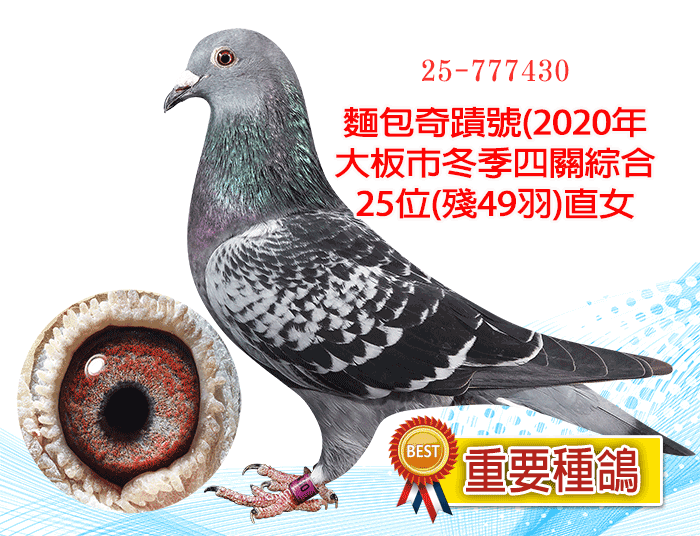 【重要種鴿】麵包奇蹟號(2020年大板市冬季四關綜合25位(殘49羽)直女