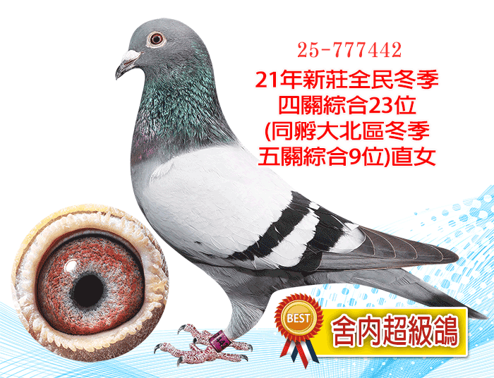 【舍內超級鴿】21年新莊全民冬季四關綜合23位(同孵大北區冬季五關綜合9位)直女
