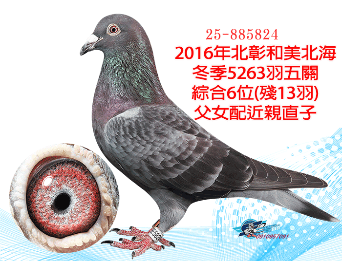 2016年北彰和美北海冬季5263羽五關綜合6位(殘13羽)父女配近親直女