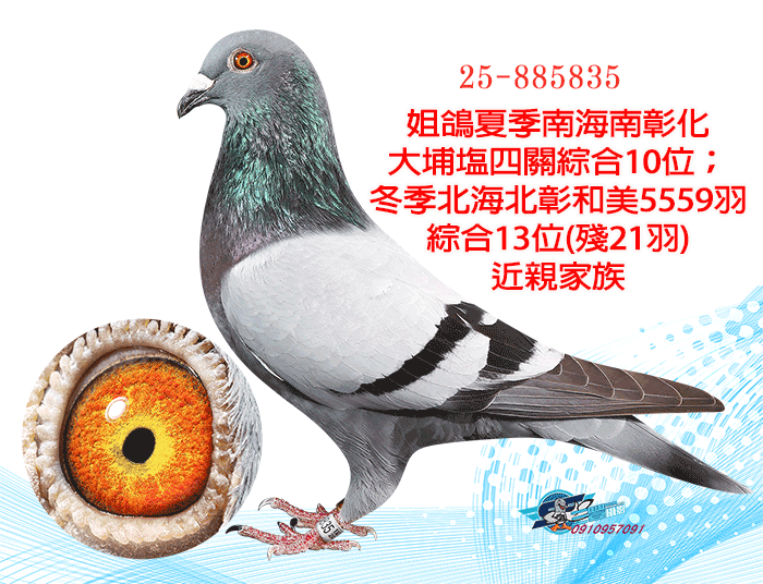姐鴿夏季南海南彰化大埔塩四關綜合10位;冬季北海北彰和美5559羽綜合13位(殘21羽)近親家族
