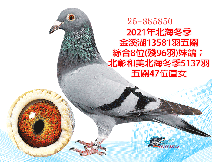 2021年北海冬季金溪湖13581羽五關綜合8位(殘96羽)妹鴿;北彰和美北海冬季5137羽五關47位直女