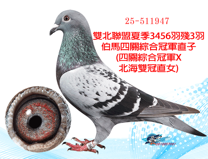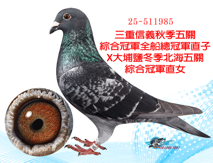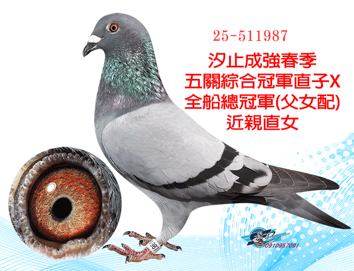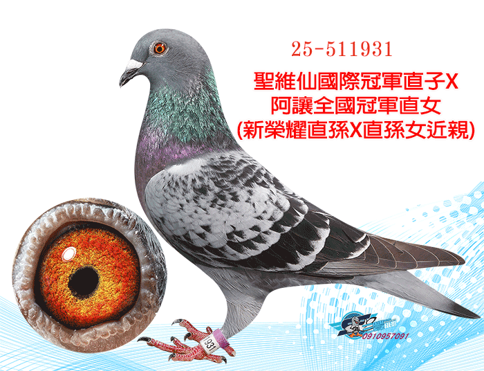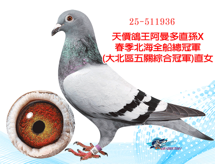 天價鴿王阿曼多直孫X春季北海全船總冠軍(大北區五關綜合冠軍)直女