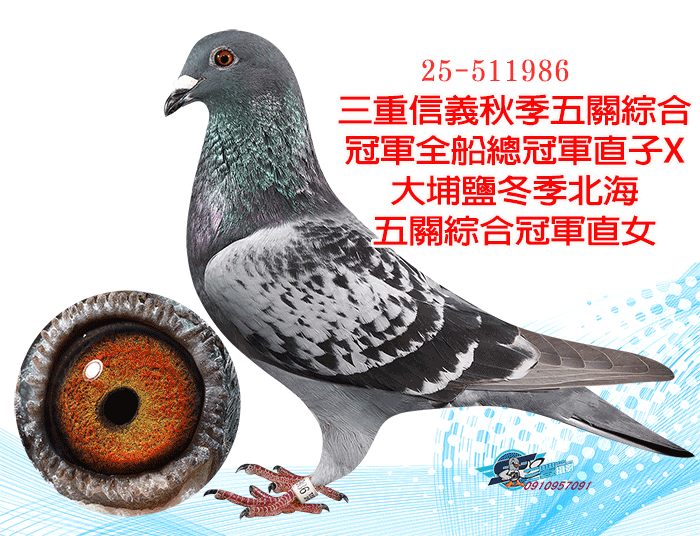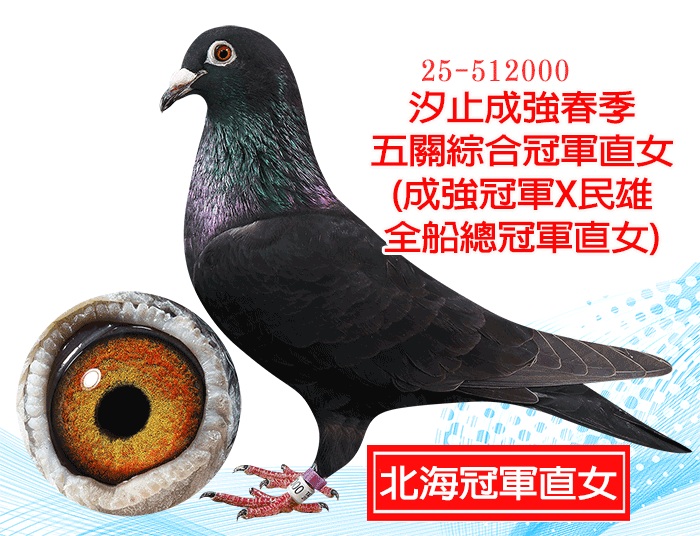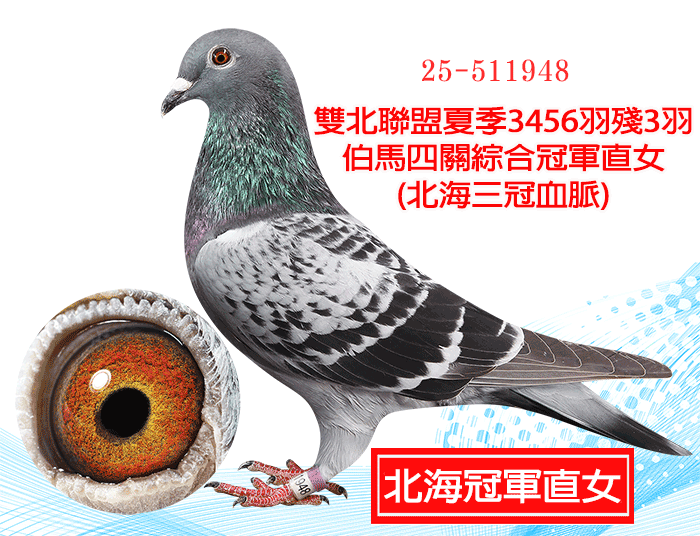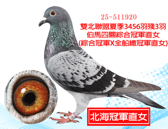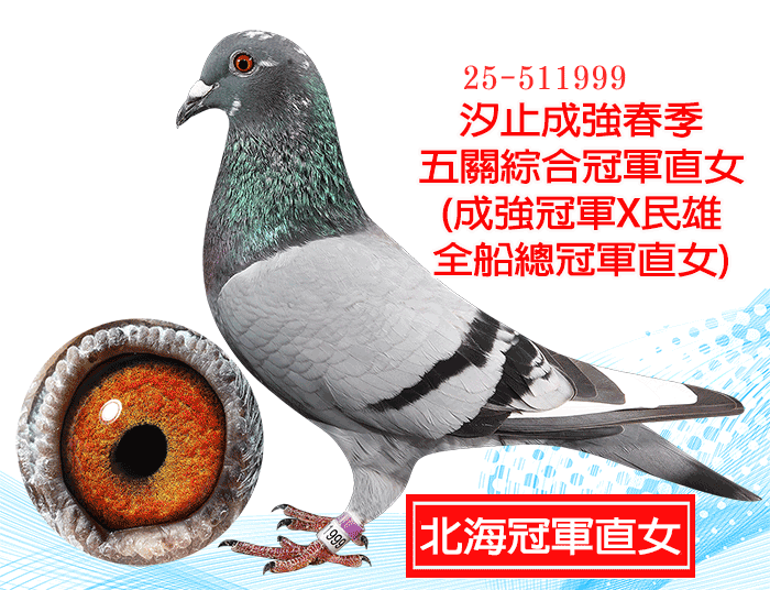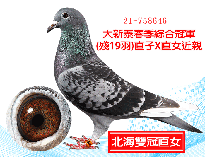 【北海雙冠直女】大新泰春季綜合冠軍(殘19羽)直子X直女近親