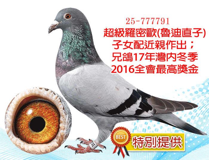 【特別提供】超級羅密歐(魯迪直子)子女配近親作出;兄鴿17年灣内冬季2016全會最高獎金