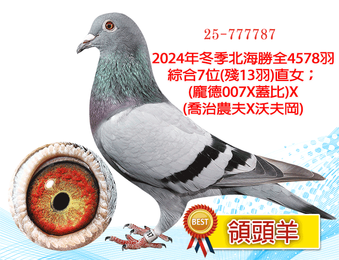 【領頭羊】《11主羽》2024年冬季北海勝全4578羽綜合7位(殘13羽)直女;(龐德007X蓋比)X(喬治農夫X沃夫岡)