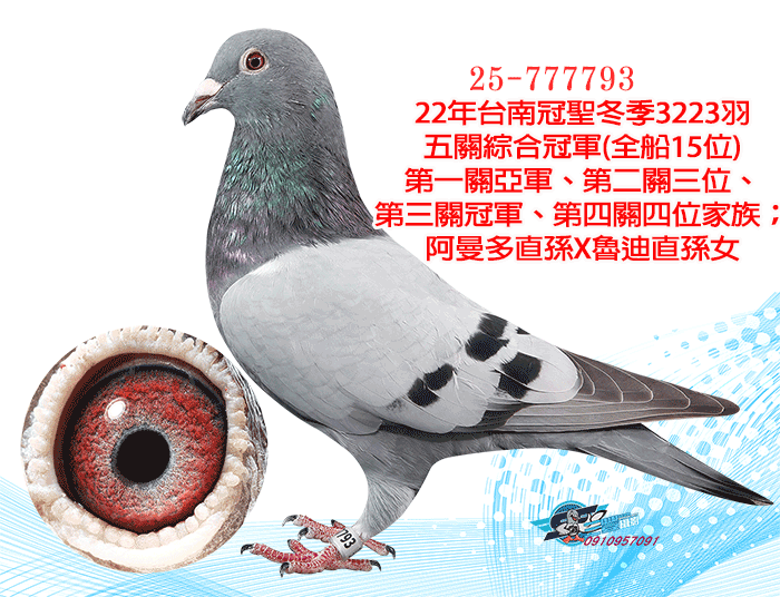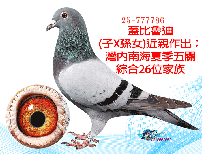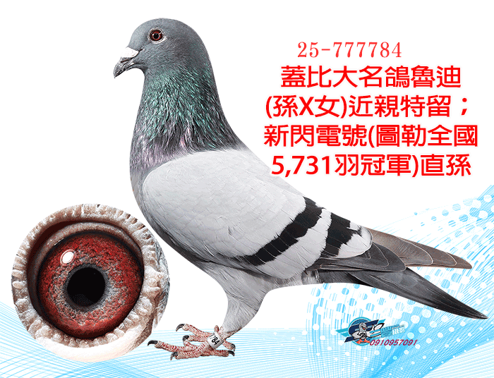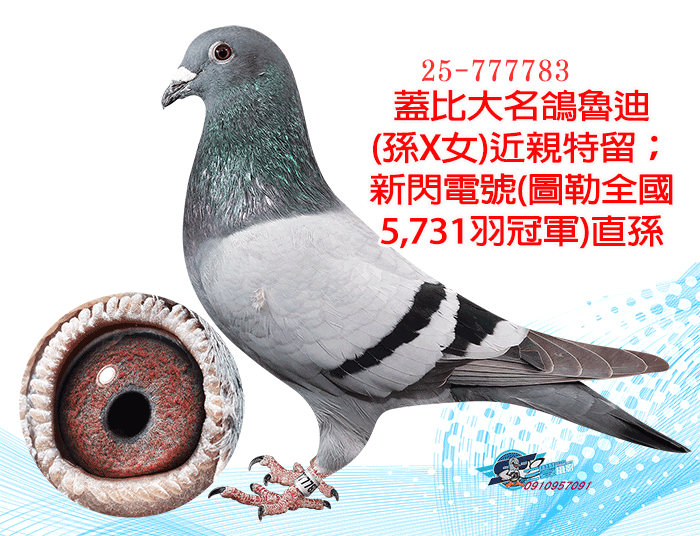 蓋比大名鴿魯迪(孫X女)近親特留;新閃電號(圖勒全國5,731羽冠軍)直孫
