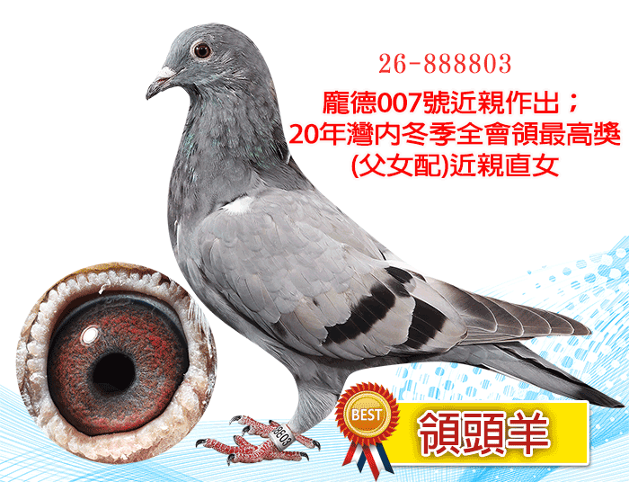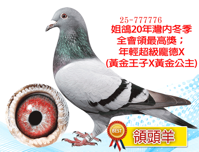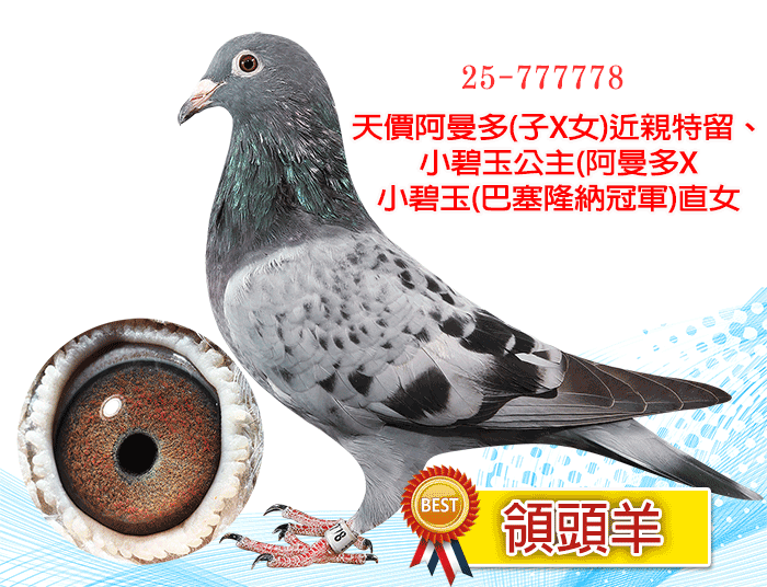 奧林匹克鴿王全國亞軍弟鴿(奧林匹克珍寶直子)X基斯(布利福全國冠軍)X阿曼多全妹