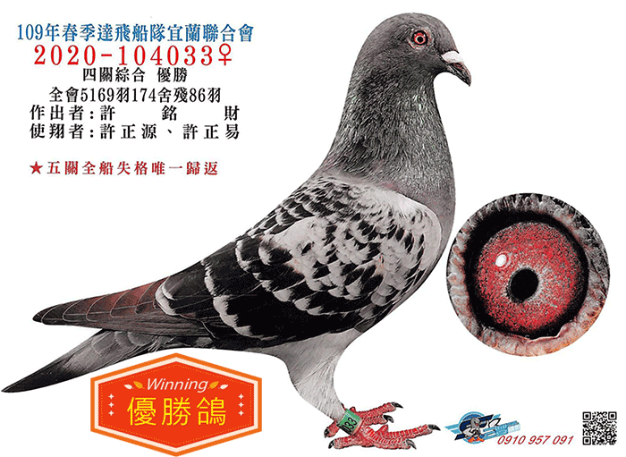 【優勝鴿】《小火箭X100戈登》本身入賞春季宜蘭聯合會5169羽四關綜合優勝