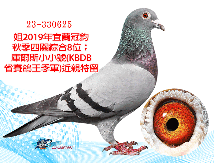 姐2019年宜蘭冠鈞秋季四關綜合8位;庫爾斯小小號(KBDB省賽鴿王季軍)近親特留